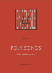 Cette formation, membre de la Fevis, et dirigée par la compositrice Elisabeth Angot, ne cesse de réinventer son répertoire et sa pratique. Ce samedi, elle s’empare d’un trésor patrimonial, onze chansons traditionnelles de France, Italie, Arménie, Azerbaïdjan, Etats-Unis, arrangées et orchestrées en 1963 par le grand compositeur Luciano Berio ; ces Folk Songs qui ont immédiatement rencontré un large public et que l’Ensemble avait joués en 2019 pour son premier concert au Parvis d’Avignon, elle les marie avec jubilation à quatre de ses propres créations et à d’autres pépites, des musiques traditionnelles venues d’Inde, d’Europe de l’Est ou d’ailleurs… « Du solo à l’ensemble de sept musiciens avec voix soliste, les genres se croisent, s’hybrident et s’enrichissent mutuellement. »