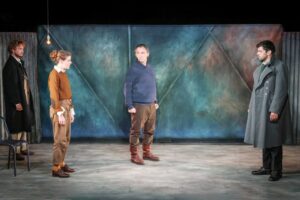 Annenkov, Dora, Stepan et Kaliayev quatre révolutionnaires socialistes se retrouvent dans une cave et préparent l’attentat contre le grand-duc Serge. Les acteurs incarnent avec beaucoup de justesse ces personnages si différents dans leur caractère, même s’ils ont tous le même objectif : libérer le peuple de la tyrannie. Mais jusqu’où sont-ils prêts à aller pour cela ? C’est la question essentielle de la pièce. Le lendemain, Kaliayev renonce à tuer le grand-duc car celui-ci est accompagné de ses neveux. Stepan, incarné avec brio par Arthur Cachia, le lui reproche alors avec colère, en fanatique prêt à tout. Kaliayev, brillamment interprété par Oscar Voisin, est plus modéré, il semble plus humain et attachant, même s’il va commettre l’attentat ensuite, une fois le grand-duc seul, et en considérant plutôt la justesse de son action que le meurtre d’un homme. Ce sont les idées qu’il défend devant la grande-duchesse pourtant prête à lui pardonner son acte. L’humanité de chacun est ainsi interrogée.