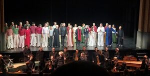 Pour cette actuelle version scénique de haute volée, qui s’est jouée deux fois in loco à guichets fermés, l’Opéra Grand Avignon peut légitimement s’enorgueillir d’avoir réussi une coproduction avec deux maisons prestigieuses (l’Opéra-Comique de Paris et l’Opéra royal de Versailles). Et d’avoir obtenu que le Choeur de l’Opéra Grand Avignon bien préparé par Alan Woodbridge se substitue, sans démériter, à La Capella Reial de Catalunya, partie vocale habituelle de la production. Le directeur était également très ému de saluer après la représentation Jordi Savall, immense artiste, fin connaisseur de la musique ancienne, infatigable découvreur, interprète inspiré. MBA l’avait reçu en juin 2022, en ce même lieu, avec sa viole de gambe et deux autres musiciens dans un programme « Folias et Romanescas » ; nous avions eu l’honneur de l’interviewer en amont du concert.